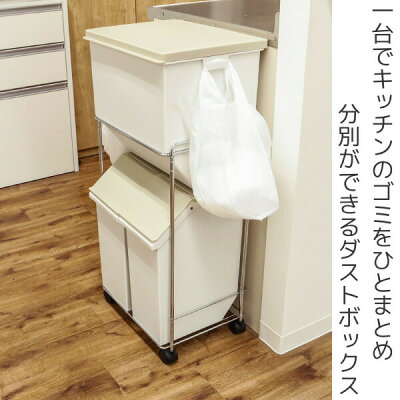 サイズ約 幅39×奥行33×高さ84.5(cm)内容量60L(上段:30L、下段15L×2個)材質本体・フタ・袋止め:ポリプロピレンフレーム:スチール(クロムメッキ)キャスター:ポリプロピレン、ナイロン/ポリアミド生産国日本製組立状態組立品備考※分別用シール1枚付属※床に直接置く際は、フレームのキャスター差込口がむき出しとなっており床等を傷つける恐れがありますので、傷防止シートなどを使用してください。