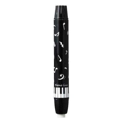 黒ベースの本体に、ピアノの鍵盤と楽譜に登場する各種記号をデザインしました。
