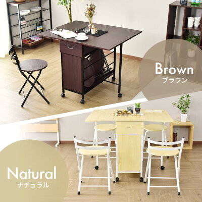 配送について 送料 無料 (沖縄・離島・一部地域見積り) ●商品詳細 -infomation- 商品名 折り畳み式ダイニングセット Layla【レイラ】 サイズ 【テーブル】幅100×奥行80×高さ75(cm) 【チェア】幅41.5×奥行43×高さ65(cm) 材 質 【構造部材】 合成樹脂化粧繊維板・スチールパイプ カラー ブラウン ナチュラル 重 量 【テーブル】約25kg 【チェア】約3.5kg 耐荷重 【天板】15kg 【折りたたみ天板】各5kg 【引き出し】各5kg 【チェア収納部分】15kg※チェア4脚を含む 【チェア】80kg 梱包サイズ(重量は梱包材含む) 幅83×83×25(cm)/40kg(梱包材含む) 備 考 ※他商品との同梱は出来かねます。