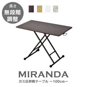 ガス圧昇降式テーブル 幅100cm 完成品 テーブル 昇降テーブル 昇降式 高さ調節 ガス圧 無段階 昇降テーブル リフティングテーブル ダイニングテーブル ローテーブル センターテーブル リビングテーブル デスク 大理石調 北欧 おしゃれ ミランダ100×55 送料無料