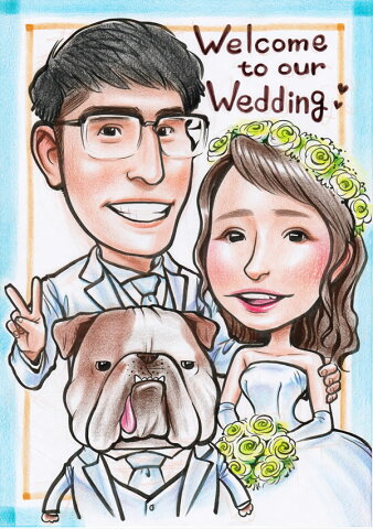 ウェルカムボード ウェディング ブライダル 両親 プレゼント 結婚式 贈答品 贈答用 似顔絵ウェルカムボード サンクスボード 和 写真 玄関 記念品「そっくりで面白かわいい似顔絵」