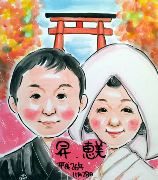 ウェルカムボード ウェディング ブライダル 両親 プレゼント 結婚式 贈答品 贈答用 似顔絵 ウェルカムボード サンクスボード 和 写真 玄関 記念品 ウェディングボード「ほんわかウキウキ画」