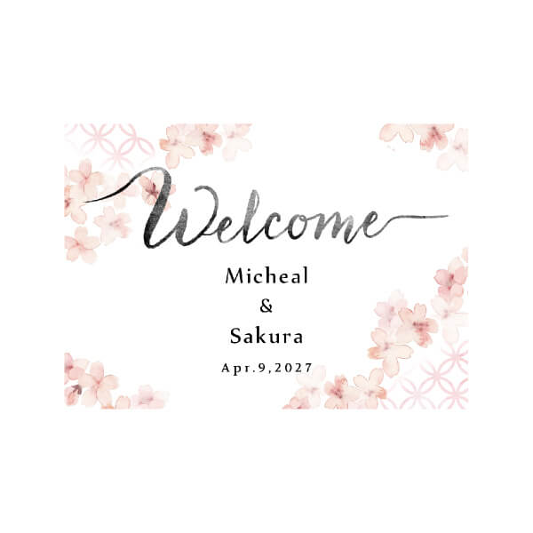 桜のデザインが施された、どこか儚さを感じるけれど上品なウェルカムボード。