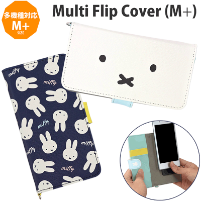 スマホケース ミッフィー miffy 手帳型 多機種対応 全機種対応 汎用型 マルチフリップカバー アップ 総柄 マルチフリップカバー キャラクター M+サイズ マグネット式 iPhone Android スマホケース ミッフィー 手帳型 多機種対応 全機種対応 汎用型