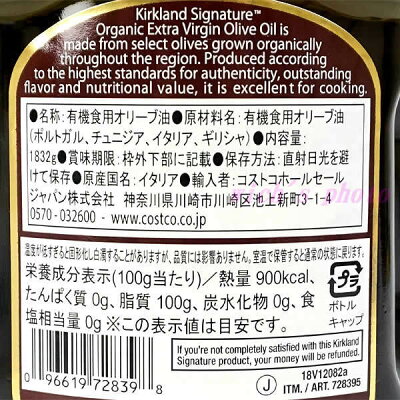 KIRKLAND カークランド シグネチャー オーガニックエクストラバージンオリーブオイル 1832g 有機JAS Organic Extra Virgin Olive Oil 有機 コストコ COSTCO 通販 送料無料 温度が低すぎると固形化、白濁することがありますが、品質には影響がありません。