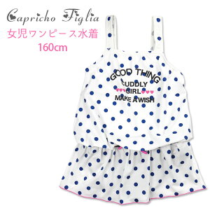 ジュニア用ワンピース水着セット 160cm 368053 capricho Figlia カプリチョフィリア ミニスカート 子供 子ども 女児 女の子 水玉柄 ドット リボン 青 白 ホワイト あす楽 メール便送料無料