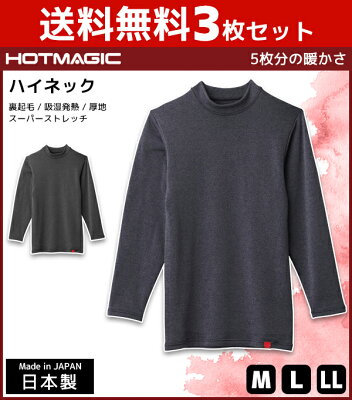 送料無料3枚セット HOTMAGIC ホットマジック ハイネックシャツ 長袖 グンゼ GUNZE 日本製 防寒インナー 温感 ヒートテック | 男性下着 男性肌着 冬 防寒 メンズ あったかインナー あたたか あったかアイテム 寒さ対策 暖かい肌着 温かい ハイネック 長袖肌着 ロングスリーブ