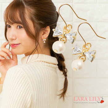 樹脂ピアス 樹脂ノンホールピアス リボン ガラスストーン コットンパール 6mm キスカ フック スタッド シンプル おしゃれ かわいい 小ぶり 揺れる レディース 春 夏 秋 冬 金属アレルギー 安心 樹脂イヤリング komyu