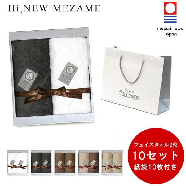 内容 フェイスタオル:2枚 【10セット・紙袋10枚付き】 サイズ フェイスタオル:32cm × 87cm 素材 綿100% 原産国 日本(今治) 認定番号 第2019-2295号 販売元 合同会社 5 SECONDS ・ご注意:モニターの発色の具合によって実際のものと色が異なる場合があります。